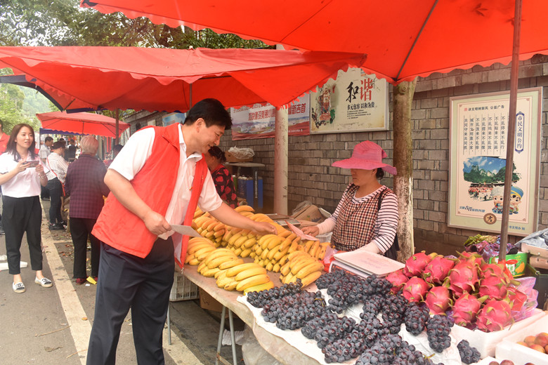 党组成员、副局长董佳瑛给村民分发扫黑除恶宣传手册