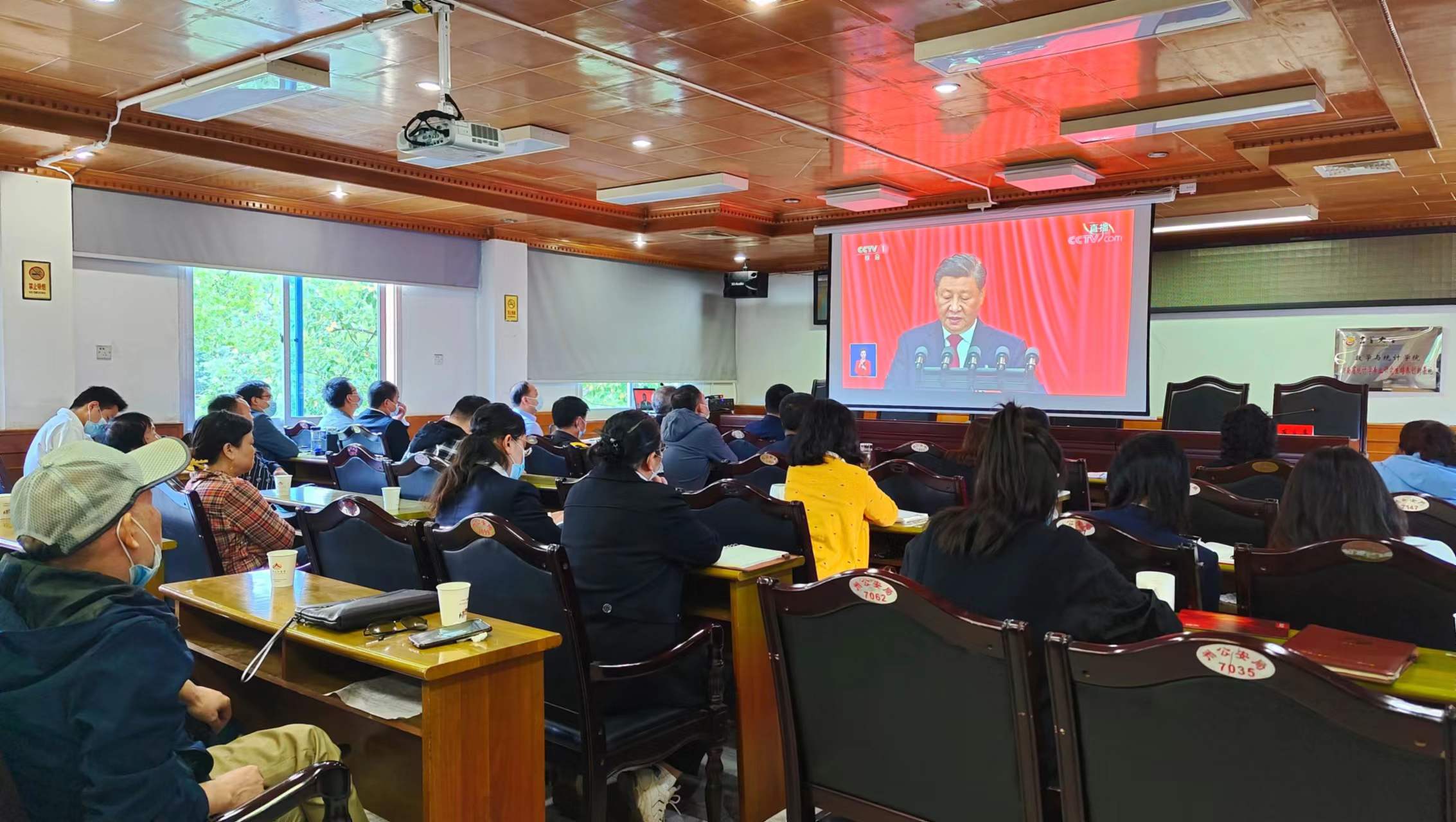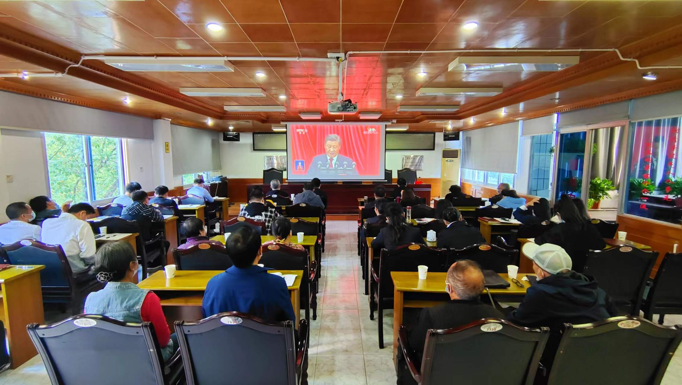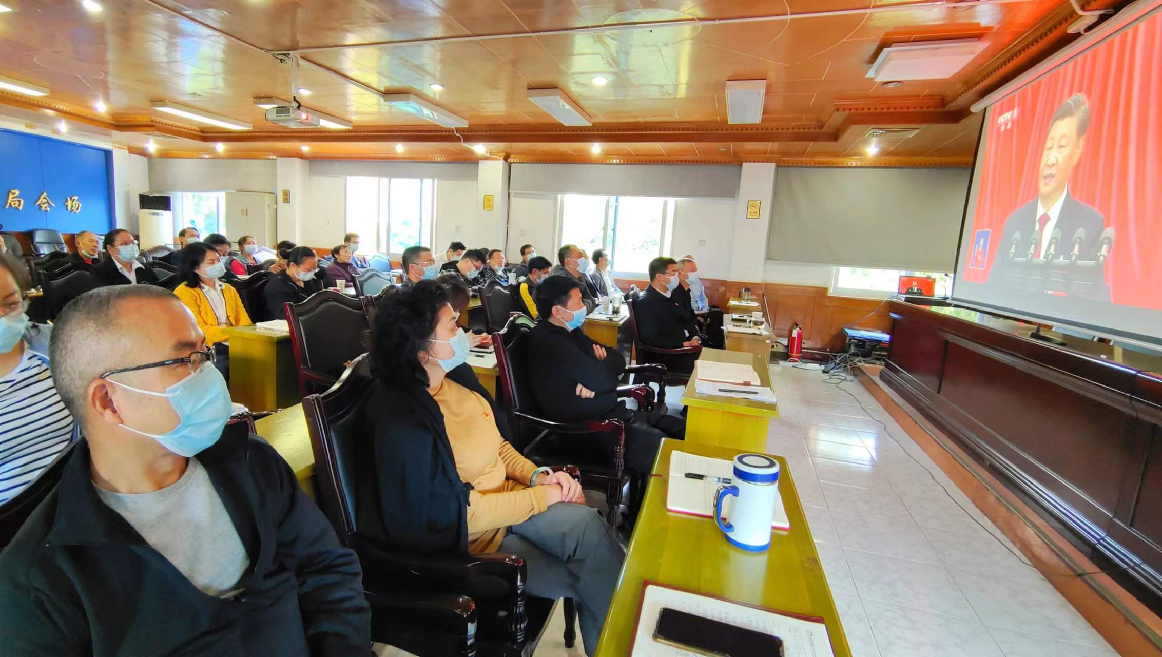 ,州统计局在职干部职工及退休老干欢聚一堂,共同收看中国共产党第二十次全国代表大会开幕会现场直播。
