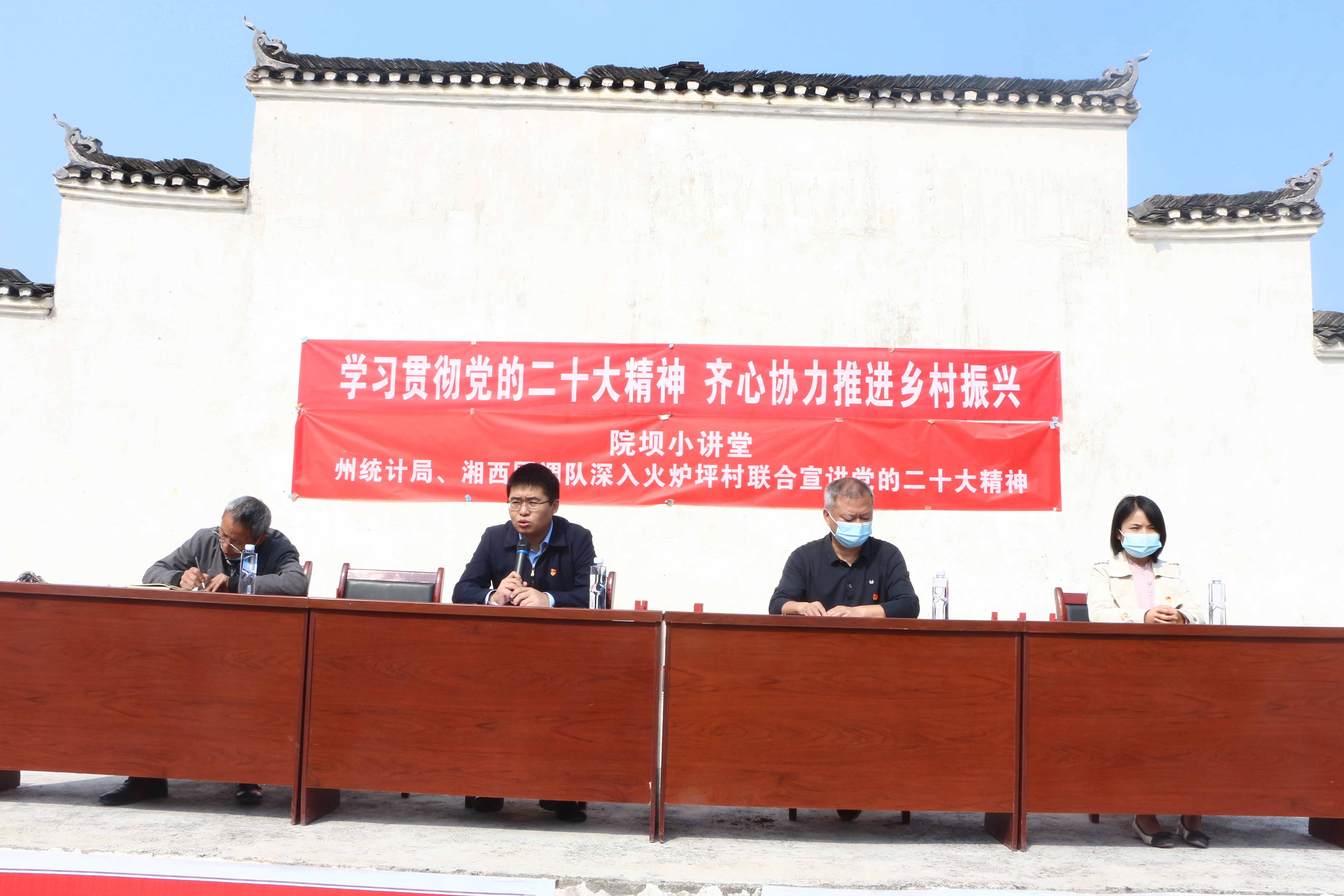 月4日,为深入学习贯彻党的二十大精神,州统计局党组书记、局长唐正以《学习贯彻党的二十大精神齐心协力推进乡村振兴》为题开展学习宣传活动,带领全体干部职工与火炉坪村支两委、党员及群众代表一起学习党的二十大报告精神。