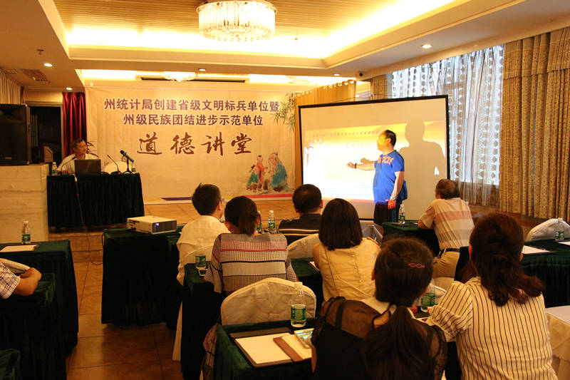 为践行社会主义核心价值观,弘扬中华民族道德力量,宣传统计文化,9月2日,州统计局结合“两学一做”第三专题研讨,开展了以 “讲道德、有品行”为主题的道德讲堂。州统计局全局干部职工参加了讲堂。