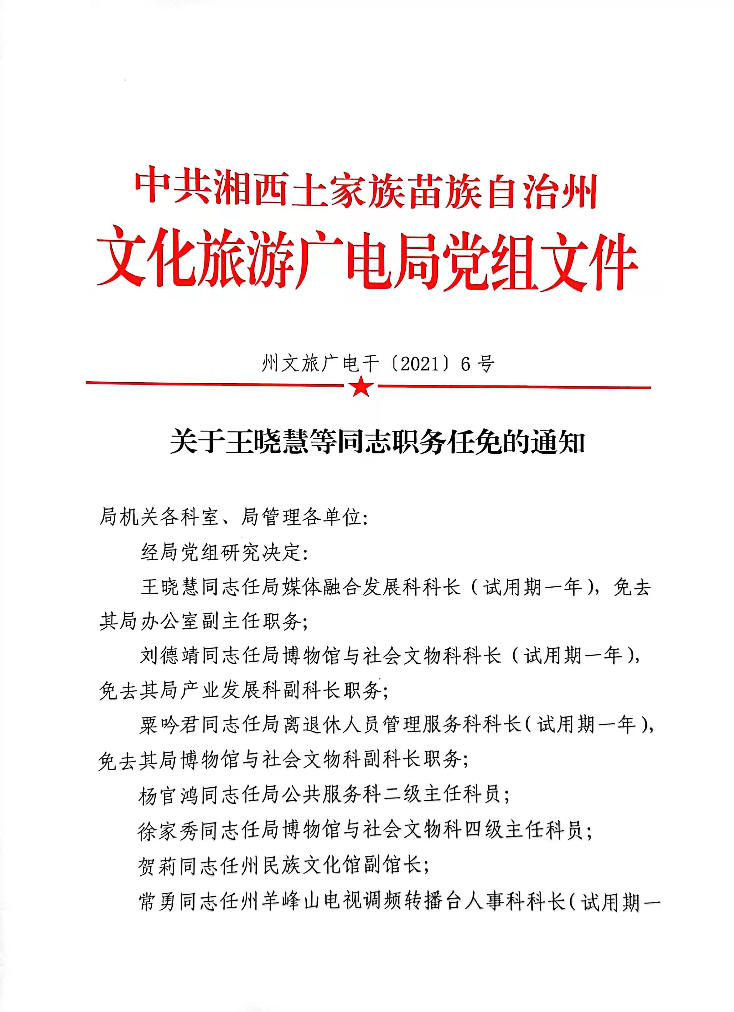 关于王晓慧等通知职务任免的通知