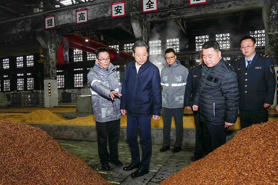 虢正贵到酒鬼酒公司原料仓库调研督导食品安全工作。团结报 刘炜 摄
